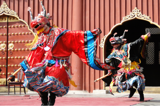 內蒙地區(qū)的查瑪樂舞已與藏族地區(qū)的“羌姆”明顯不同。隨著藏傳佛教傳入蒙古地區(qū)后,積極的吸收和融合了蒙古族傳統(tǒng)音樂舞蹈和薩滿教神舞的因素后形成了蒙古化的查瑪樂舞。因此,內蒙地區(qū)的查瑪內具有復合型和多元性特點。2008年,查瑪樂舞被列入國家級非物質文化遺產。