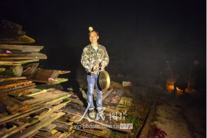 新娘之所以“不落夫家”,一是仍要報答父母的養(yǎng)育之恩;二是舍不得童年伙伴,還要回到寨子里與伙伴們伴做伴,最長可達(dá)三年之久;直到同伴都有了對象才分散,新娘方到新郎家長住下去,這樣的奇趣婚俗也在黔東南的一些侗族地區(qū)一直得以保存下來。圖為11月17日凌晨,新郎家派來的娶親隊伍點著火把前來娶親。