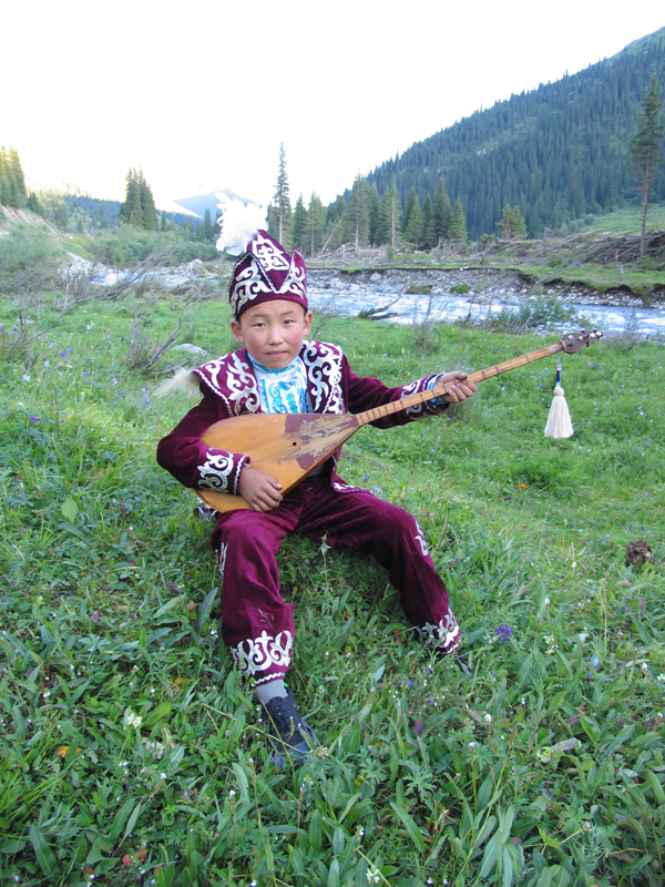 哈薩克族的音樂主要是民間音樂,大多都是由民間歌手即興編寫而創(chuàng)作的,少數(shù)是由一些音樂家專門創(chuàng)作的。一般情況下,每個(gè)曲調(diào)都有標(biāo)題,而且還具有獨(dú)特的音樂效果,不同的情景、情感、格調(diào)都是用不同的曲調(diào)表示,如在婚禮儀式上,不同情景中會(huì)表達(dá)不同的情感,迎娶新娘時(shí)唱“薩仁”,這主要是婆家人來勸說新娘安心嫁給新郎,開開心心地去婆家過幸福生活;“加爾”的曲調(diào)主要是反映年輕人在迎娶新娘時(shí)喜悅的心情,還有嬉笑玩鬧的場(chǎng)景;揭面紗時(shí)會(huì)唱“別塔夏爾”曲調(diào),反映婆家人對(duì)新娘的囑咐和期待。