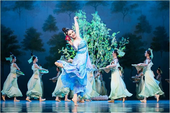舞劇《傳絲公主》以蠶絲為戲劇元素,以蠶桑女寧兒與于闐王子尉遲的愛情為外在線索,以盛唐時中原與西域的交流往來為隱伏線索,將凄美的愛情故事與壯闊的家國情懷交織在一起,引領(lǐng)觀眾穿越到大唐盛世,感受繁興的絲路文化和豐富多彩的民族風情。