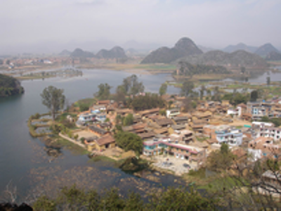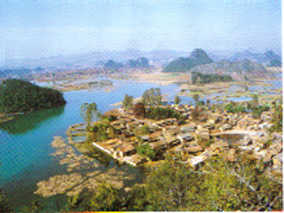 在一次學(xué)術(shù)會(huì)議上,筆者請(qǐng)教了首倡并主導(dǎo)“民族文化生態(tài)村”試點(diǎn)建設(shè)的尹紹亭教授,得知在他們首期的五個(gè)試點(diǎn)村落建設(shè)中,仙人洞村是比較成功的,于是在本項(xiàng)目的調(diào)查中,仙人洞村成為重點(diǎn)考察的對(duì)象之一?!跋扇硕匆妥逦幕鷳B(tài)村”位于云南丘北縣城西北16公里的普者黑湖畔?!捌照吆凇睘楫?dāng)?shù)匾妥迦瞿嵴Z(yǔ),意為“魚蝦多的湖潭”。普者黑實(shí)際是由眾多湖泊、河流構(gòu)成,總面積達(dá)165平方公里,已經(jīng)開發(fā)成由5個(gè)景區(qū)、56個(gè)景點(diǎn)組成的滇東南國(guó)家級(jí)著名旅游景區(qū)。