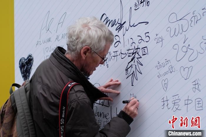 一名外國(guó)友人參觀畫(huà)展,并簽名?!⒖÷?攝