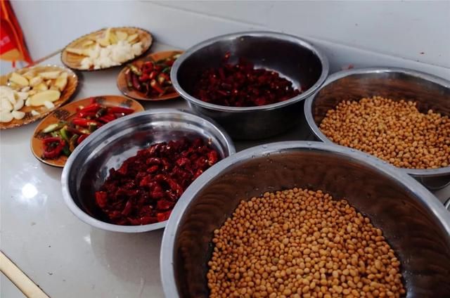 黃豆、干辣椒、小辣椒、蒜、姜,