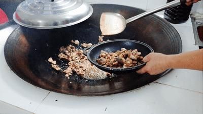 鍋中不能有積水,保持爆炒為上。