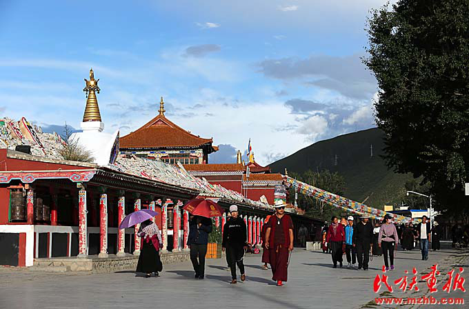 黃昏的嘉那嘛呢石經(jīng)城,當(dāng)?shù)剞D(zhuǎn)經(jīng)人和來(lái)自各地的游客