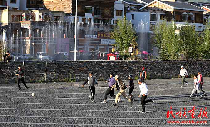 漫步在結(jié)古街頭,看到的是行走在寬闊馬路上幸福祥和的人們;在綠樹掩映的康巴藝術(shù)中心、格薩爾廣場(chǎng),看到的是跳著鍋莊或慢跑的人們享受著城市發(fā)展帶來(lái)的愜意;在街道社區(qū),看到的是尊老愛幼、其樂融融的風(fēng)尚。