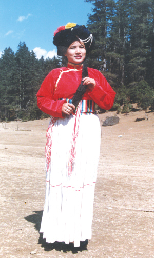 寧蒗地區(qū)的普米婦女多穿束腰、多褶的百褶裙,常用白藍(lán)等色的棉麻布制成,裙長(zhǎng)幾乎拖至腳面。活動(dòng)時(shí),她們將裙子從左面提起,掖在腰間?! ?/p>
