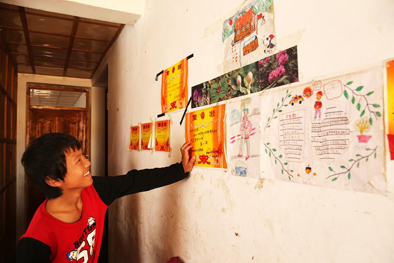 13歲的龍初杰是貢山縣一中初一學(xué)生,弟弟初濤在獨(dú)龍江鄉(xiāng)中心小學(xué)讀五年級(jí),小弟弟初夏上村小三年級(jí)。趁著放假,兄弟三人都回到了龍?jiān)宓男录抑小?/p>