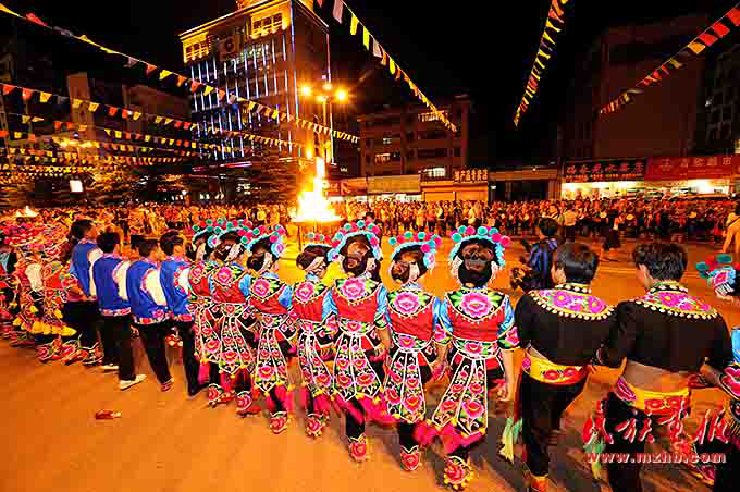 火把節(jié)是彝族傳統(tǒng)節(jié)日中最普遍、最隆重、最富有民族特色的節(jié)日,一般在農(nóng)歷六月二十四至二十六舉行,楚雄彝族火把節(jié)于2006年5月經(jīng)國務(wù)院批準為第一批國家級非物質(zhì)文化遺產(chǎn)保護項目。節(jié)日內(nèi)容集民俗活動、經(jīng)貿(mào)活動、文體活動和社交活動于一體,像磁石一樣吸引著各族群眾,許多人就是通過參加火把節(jié)認識了彝族,知道了楚雄彝族自治州的。節(jié)日期間,各族人民載歌載舞,耍火把、放焰火,火把節(jié)成了弘揚彝族文化、促進對外交流、開展經(jīng)貿(mào)活動和各族人民大團結(jié)的盛會。
