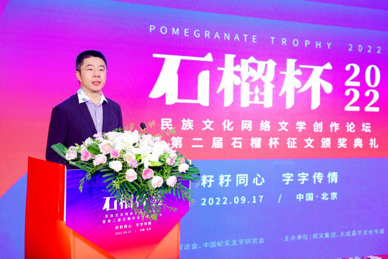 2022年9月17日,民族文化網(wǎng)絡(luò)文學(xué)創(chuàng)作論壇暨第二屆石榴杯征文頒獎活動在民族文化宮舉行。本次活動得到了國家民委所屬中國少數(shù)民族文化藝術(shù)促進(jìn)會和中國紀(jì)實文學(xué)研究會的指導(dǎo)與支持,由閱文集團(tuán)、北京天成嘉華文化傳媒主辦,天成達(dá)星國際傳媒承辦。