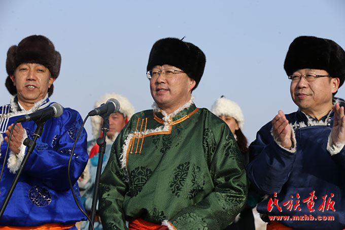錫林郭勒盟委副書記、行署盟長霍照良(中)宣布那達慕開幕