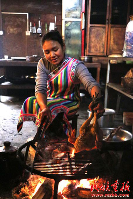 火燒獨龍雞是獨龍族人逢年過節(jié)團圓飯不可缺少的一道特色菜(余金成 攝影)