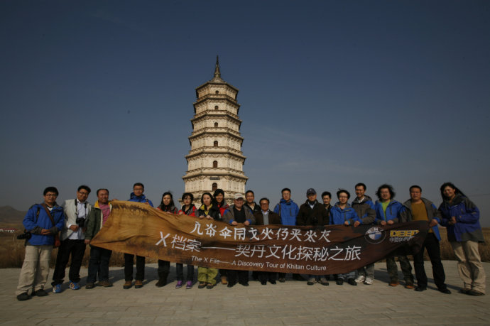 巴林右旗的慶州白塔是契丹遼文化的代表景點之一,圖為“契丹文化探秘之旅”小組在慶州白塔(網(wǎng)絡圖片)