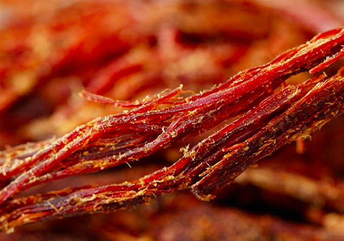 火燒干巴的吃法不復(fù)雜,不加任何輔料,不加任何味道,撕開肉絲即可食用。如果覺得干,可以涼拌一盤黃瓜輔之,風(fēng)味更甚。剛燒出來的干巴,香且脆,味勻,擱置太久,會回軟,失去其原有的香脆可口的口感。