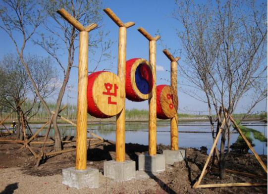 阿榮旗新發(fā)鄉(xiāng)東光村歷史悠久,地處xian城郊,西鄰阿倫河,三面曲水環(huán)繞,擁有3000畝優(yōu)質(zhì)稻田,楊柳疏朗,稻田錯(cuò)落,田園景致幽美,村內(nèi)建筑布局有致,村民充分發(fā)揮地理優(yōu)勢(shì),打造自然生態(tài)景觀(guān)和人文景觀(guān),在村中修建了很多帶有朝鮮族特點(diǎn)的民居、寨門(mén)、文化廣場(chǎng)、民俗館、養(yǎng)老院、餐飲一條街等,這些都保留著朝鮮族聚居區(qū)獨(dú)有的生活習(xí)俗和文化景觀(guān)。