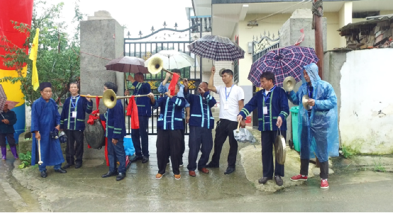 布依族青年們抬著族中神物銅鼓,吹著長(zhǎng)長(zhǎng)的號(hào)角,臉上滿是對(duì)民族節(jié)日的期待之情,驕傲又興奮;成群結(jié)隊(duì)的孩童穿著本民族傳統(tǒng)服飾,手拿錦帶,熱忱歡迎遠(yuǎn)道而來(lái)的客人;能歌善舞的布依阿姐笑臉相迎,唱著布依族的歌謠,一字排開堵在門前,客人們想要進(jìn)去參加這次盛會(huì),就得過三關(guān),干了三碗攔路酒。