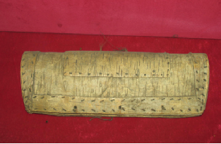 鄂倫春族素有“白樺民族”之稱,白樺樹皮制品種類非常多,大到可以乘人載物的樺皮船、圍蓋“仙人柱”的“鐵克沙”,小到可以裝在衣兜里的煙盒和含在口中的狍哨,提水用的桶、采集用的簍、裝物用的箱、盛飯用的盆、吃飯用的碗、喝酒用的蠱等等。樺樹皮制品的裝飾圖案可以通過(guò)壓劃、壓?。c(diǎn)刺)、剔刻、烙燙、補(bǔ)花、繪畫等多種方法形成。壓印點(diǎn)刺是最常用的裝飾手段,工具是用獸骨制成的,分單齒、雙齒、多齒和簡(jiǎn)單幾何形幾種。先在剪裁好的器物材料上,用壓、打等方法點(diǎn)刺出裝飾紋樣,再縫合成器物成品。這種裝飾多為素面凹形花紋,顯得樸實(shí)單純,而且器物越陳舊樺皮顏色越深,越有光澤,圖紋越清晰。也有人在壓打線上著色,這便形成了另一種風(fēng)格,美觀艷麗而且突出了物象特征。