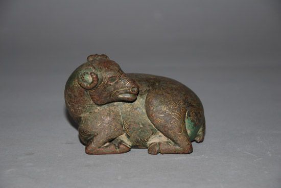 錯金銀回首臥式銅羊