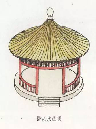 我國古代建筑的屋頂式樣非常豐富,變化多端。等級低者有硬山頂、懸山頂,等級高者有廡殿頂、歇山頂。此外,還有攢尖頂、卷棚頂,以及扇形頂、盔頂、盝頂、勾連搭頂、平頂、穹窿頂、十字頂?shù)忍厥獾男问?。廡殿頂、歇山頂、攢尖頂?shù)扔钟袉伍埽亻苤畡e,攢尖頂則有圓形、方形、六角形、八角形等變化形式。