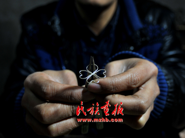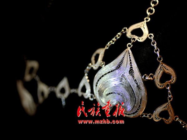 走進(jìn)龍?zhí)柕拿缱邈y飾傳承工作室,一件件銀飾讓人目不暇接,嘆為觀止??此破掌胀ㄍǖ你y片、銀條,在他的手里富有生命力的藝術(shù)作品,每個(gè)制作細(xì)節(jié)和過程都透著一股精致。