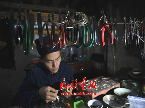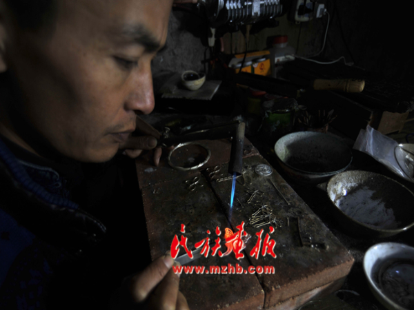 留守村寨的苗族銀匠龍?zhí)枅?jiān)信,在家依靠勤勞的雙手同樣可以致富