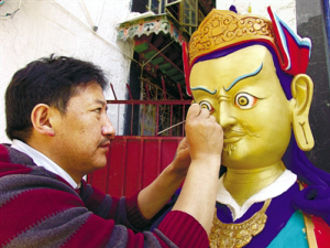 西藏自治區(qū)拉薩市城關(guān)區(qū)恰彩崗路11號(hào)是八廓街東面諸多巷院里一個(gè)極其普通的大院。在這里,一個(gè)集土建、唐卡繪畫、金屬雕刻、木雕、古藝建筑研究、西藏傳統(tǒng)手工藝技能培訓(xùn)為一體的國家文化產(chǎn)業(yè)示范基地——拉薩古藝建筑美術(shù)公司就坐落在這個(gè)古樸的大院內(nèi)。