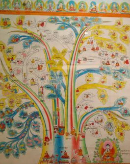 “唐卡”也叫“唐嘎”、“曼湯”,系藏語譯音。唐卡的起源,至今沒有史料給予精確的記載。據(jù)藏史記,兩千多年前在西藏修建的第一座宮殿——雍布拉宮的墻壁上就繪有壁畫,由此說明唐卡的雛形是源于壁畫。有的學者認為,最早的唐卡是繪制在獸皮上,它起源于牧業(yè)文明的雅礱文化時期。唐卡可分為兩大類,一類是用絲絹制成的唐卡叫“國唐”,另一類是用顏料繪制的唐卡叫“止唐”。常說的80幅醫(yī)學唐卡即“止唐”中的一種,全稱為彩色繪畫唐卡。彩繪唐卡是依據(jù)《四部醫(yī)典》這部巨著,在公元1730年五世達賴授意第司·桑結嘉措組織藏區(qū)著名醫(yī)學家、繪畫大師通過對尸體解剖、藥材實物考察,以科學態(tài)度整理繪制的,又被稱為《四部醫(yī)典系列掛圖》,掛圖的繪制使《四部醫(yī)典》這部博大精深的醫(yī)著史書簡明易懂。西藏自治區(qū)藏藥廠的陳列室藏這珍貴的歷史資料——醫(yī)學唐卡,幾百年過去了,唐卡色彩依然明亮艷麗、工筆細膩、活靈活現(xiàn),栩栩如生。繪制唐卡的原料全部是用金、銀、珍珠、瑪瑙、珊瑚、松石、孔雀石、朱砂等珍貴的礦物寶石和藏紅花、大黃等天然植物做顏料制作而成,使唐卡有著非常高的純度和穩(wěn)定性。第司·桑結嘉措完成的唐卡有79幅,加附由第司·桑結嘉措親筆題詩加蓋印章的一幅歷代名醫(yī)圖,組成“80幅唐卡”。80幅唐卡,從藥王及藥王城(藏醫(yī)學基礎理論的建立),人體生理病理、診斷、治療的樹喻學說,病因、癥狀和分類,藏藥的藥物理論和分類,防病、診斷和治療、養(yǎng)生方法, 生動形象地反映了藏醫(yī)藥學發(fā)展的進程和偉大實踐。藏醫(yī)彩繪唐卡除了有極高的教學價值外,還有很高的民族學、歷史學、佛學及繪畫學價值,是研究藏文化的珍貴資料,其卷幅之多、內容之廣博、構思之巧妙、畫工之精湛堪稱世界醫(yī)學掛圖之最,是藏醫(yī)學對世界醫(yī)學的珍貴貢獻。詳細名目如下:
