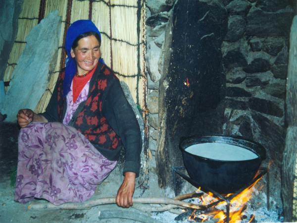 柯爾克孜族的氈房顏色潔白,下半部為圓形,上半部為塔形,以象征白雪和他們的搖籃——綿延起伏的山峰。它比哈薩克族和蒙古族的氈房略高而頂尖,也同樣具有冬暖夏涼、不存水積雪、拆裝快捷、搬運方便的特點。氈房主要由柳木、樺木、楸木制作的柵欄、支架、天窗架、門框組成。柵欄可伸縮,用4至5根木條,由駱駝皮條固定成菱形網(wǎng)格,一般的氈房需4至5塊柵欄。支架撐條的多少決定氈房的大小,一般從40根到上百根不等。柵欄外面圍上編有花紋的芨芨草簾,外覆白色圍氈和篷氈,用織有花紋的毛織帶綁扎。天窗頂部有一塊活動的3至4平方米的天窗蓋氈,在夜晚或風雨天時用毛氈繩拉動蓋在天窗上,以防風遮雨。隨著時代的發(fā)展,柯爾克孜族的氈房也在發(fā)生著變化,傳統(tǒng)氈房之外覆蓋的羊毛氈裸露在外,經(jīng)過長期的風吹、日曬、雨淋,往往會出現(xiàn)殘破變色、變薄的現(xiàn)象,有些時候還會漏雨、透風,使氈房的防風保暖、御寒保溫的作用大大降低。現(xiàn)在柯爾克孜族人們在搭建好氈房之后,會在羊毛氈之外額外覆蓋上一層薄的透明塑料材料,不僅避免氈房直接與陽光、雨水接觸,而且還提高了氈房的保暖性能,極大地延長了氈房的使用壽命。