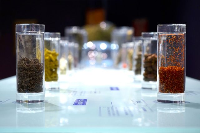 展覽還用特別的篇幅呈現(xiàn)了民族服飾對(duì)天然材質(zhì)的取用。天然,這種被視為極致的現(xiàn)代奢華,只不過是傳統(tǒng)社會(huì)中人類曾經(jīng)習(xí)以為常的日常生活狀態(tài)。那些在當(dāng)代被念念不忘、不斷回歸的傳統(tǒng)工藝表明,傳統(tǒng)依然活著,并且具有強(qiáng)大的生命力。