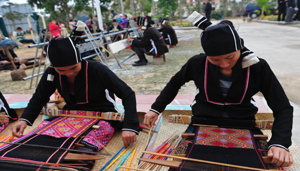 紡織也是黎族地區(qū)副業(yè)生產(chǎn)之一,紡織原料的來源,主要靠野生植物纖維,如木棉和各種野麻等,其次是以漢區(qū)或者向漢商買來的色線和色布,將其拆線使用。婦女們一般都能紡織男子上衣、吊儋和女子上衣、筒裙、胸掛、頭巾以及麻被等。筒裙和頭巾一般紡織精美,色澤巡禮、花紋精美。筒裙上的花紋,多為動物紋或者植物紋,也有少數(shù)人物紋或用具花紋。由于紡織品多產(chǎn)于民間,沒有專門的機構(gòu)和組織,所紡織的成品,都是在不脫離農(nóng)業(yè)生產(chǎn)勞動的條件下單獨進行的,所以效率很低。據(jù)調(diào)查,織一塊吊儋需要十天,一塊頭巾十天,一件無袖男子上衣四十天,一條麻被一年(長近四米,寬二點四米),紡織品一般均為自用,極少出售或者交換。