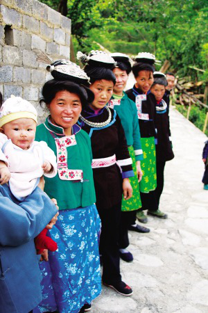晚餐時,歌聲又起。起初是一個一個地唱敬酒歌,接著我們的身后便站滿了一圈身著苗族服裝的婦女,由一人領(lǐng)唱,大伙應(yīng)和。來賓們也興奮起來,你唱我回,各地苗歌、侗歌、水歌齊上陣,聽不懂的就相互翻譯。細(xì)聽歌詞,便發(fā)現(xiàn)主人們是精心準(zhǔn)備的:他們唱的歌中有敬酒歌、生產(chǎn)勞動歌,也有接親嫁女歌,還有遷徙古歌。一位80多歲的老人唱到嫁女歌和遷徙古歌時,賓主都安靜了下來,仔細(xì)傾聽那位老人歌聲中的沉郁和蒼涼。我注意到老人家進入了角色,眼眶里滾動著淚花。