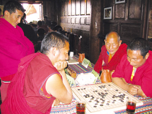 無(wú)論如何,藏棋是流傳下來(lái)了。過(guò)去,藏棋一般是在藏族上層貴族間流傳,之后也傳入了周邊尼泊爾、錫金、不丹等國(guó)。據(jù)說(shuō)1958年錫金王子去日本訪問(wèn)時(shí),曾與日本圍棋高手對(duì)弈一種規(guī)則奇特的圍棋,棋盤也是自帶的,引起了日本棋壇的驚異,而這位錫金王子說(shuō)是學(xué)自西藏僧人。這種奇特的圍棋應(yīng)該就是藏棋。
