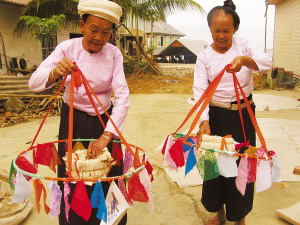 關(guān)于孔明燈的制作工藝,現(xiàn)在的年輕人掌握的已經(jīng)不多了,主要還是靠老人。景洪市嘎灑鎮(zhèn)曼回索村60多歲的民間手工藝人巖妞就是做孔明燈很有名氣的老人。巖妞制作孔明燈已經(jīng)有20多年了,他做的孔明燈飛得高,還能帶著鞭炮在空中啪啪炸響,增添了節(jié)日氣氛。在今年4月13日傣歷1374年新年節(jié)(潑水節(jié))來(lái)臨之際,巖妞忙得不亦樂(lè)乎,前來(lái)找他定做孔明燈的人絡(luò)繹不絕。