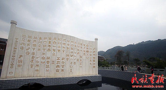 姑掛水族文化體驗(yàn)區(qū)前的水書石碑