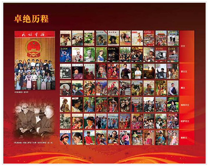 《民族畫報(bào)》創(chuàng)刊于1955年2月,周恩來總理題寫刊名。《民族畫報(bào)》用漢、蒙古、藏、維吾爾、哈薩克、朝鮮等6種文字出版,發(fā)行全國各省市區(qū)及世界50多個(gè)國家和地區(qū),一直與《人民畫報(bào)》《解放軍畫報(bào)》并成為“中國三大畫報(bào)”。2013年獲“中國百強(qiáng)期刊”稱號(hào)