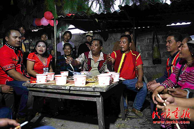 一對(duì)新人在雙方父母見(jiàn)證下,以佤族傳統(tǒng)婚禮方式喜結(jié)良緣