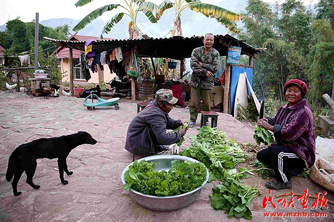 在娜作家記者見(jiàn)到了娜作的老伴兒大巖恩,他邊清理打捆著剛剛采摘下來(lái)的青菜邊說(shuō):“這些小菜城里人特別愛(ài)吃,沒(méi)有上化肥,一點(diǎn)污染沒(méi)有。這筐菜在城里一定能賣(mài)個(gè)好價(jià)錢(qián)。”