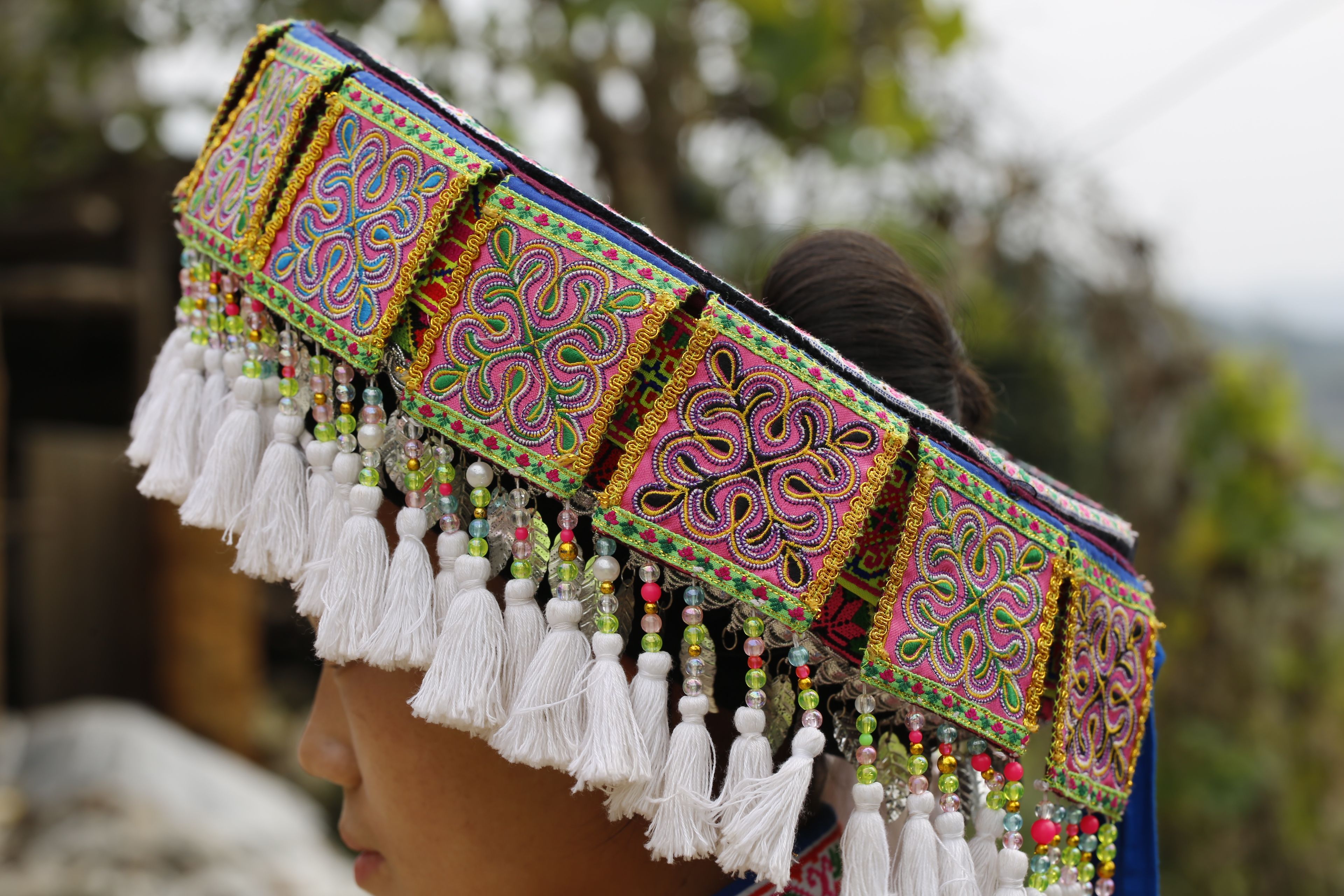 苗族女子服飾花帽-側(cè)面繡花及裝飾1