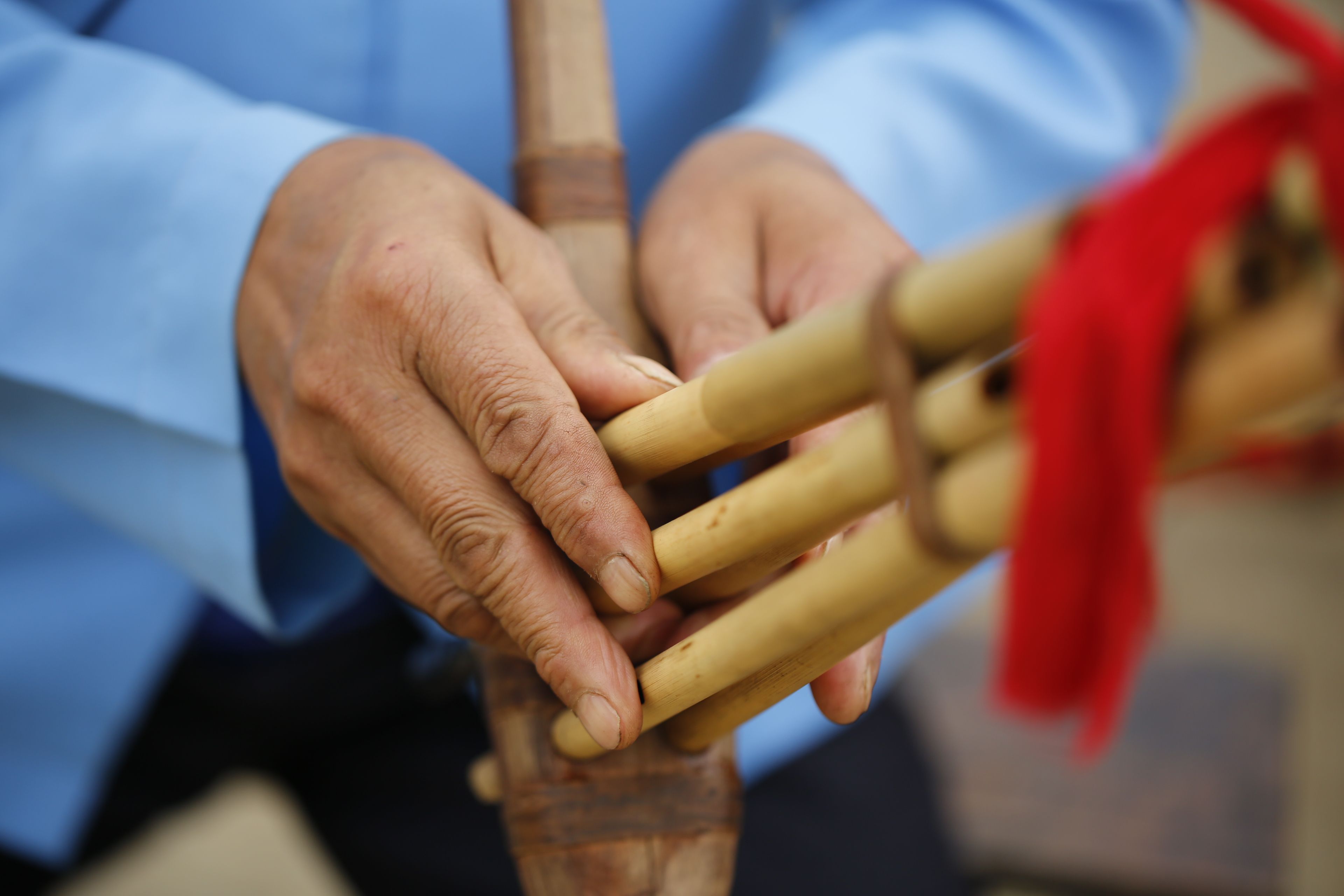 苗族花鼓舞傳承人鄧開倫教授他人吹奏蘆笙3