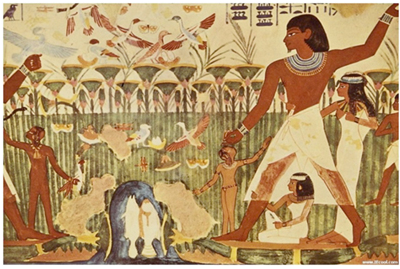 這是一門男人的手藝,父系相傳。在堅(jiān)硬的牛骨上,起刀、轉(zhuǎn)承、刻下,再施以黑色染料(少許有彩色,但以黑色居多),骨簪通體扁平,紋飾繁復(fù)卻極有空間和秩序感。人形骨簪有單人頭和雙人頭兩種。骨簪分頂部、中部、尾部三個部分。頂部為黎族傳說中峒主(也被稱為“總管三”的部落首領(lǐng))的尖頂高帽,中部為其側(cè)面像。根據(jù)黎族傳說,該首領(lǐng)是民族英雄,象征著祖先的文治武功。有趣的是,這一人像的刻畫,與古埃及壁畫人物造型的“正面律”如出一轍,即人面部的扭曲:眼睛正面,臉卻是側(cè)面。這一特征,一定程度上體現(xiàn)了古埃及人的生死觀,靈魂不滅,人能復(fù)活,而復(fù)活要憑借維持完好的軀體,因此在透視畫法沒有發(fā)明出來之前,人的五官是要盡可能的呈現(xiàn),尤其是最重要的雙眼。