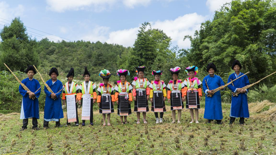 批林村蘆笙曲不限定地點(diǎn),只要蘆笙響起,田間地頭,都可以起跳。蘆笙曲曲調(diào)深沉而又悠揚(yáng),配著藍(lán)天白云,稻草風(fēng)香,整體舞蹈與天地相合,令人沉浸其中。