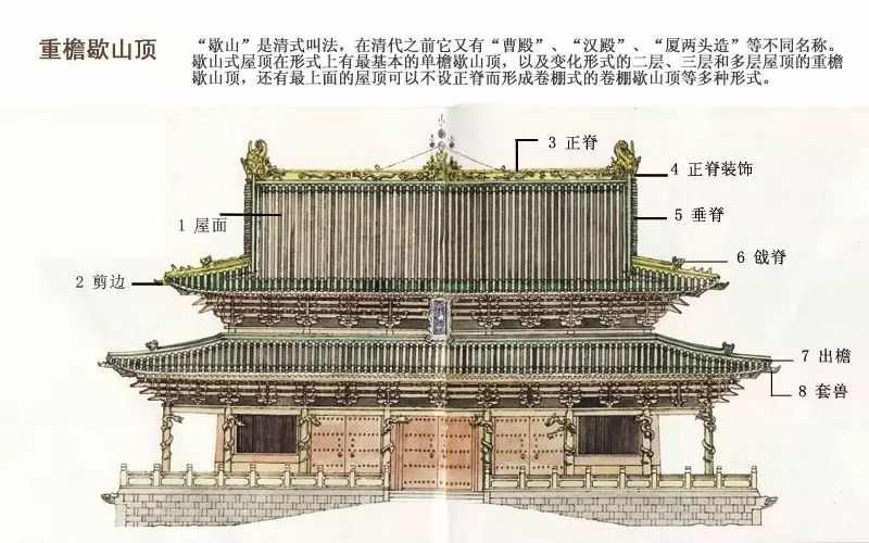 中國古建筑屋頂千變萬化,瑰麗多姿,不同的屋頂相互組合、穿插,又會形成不同的屋頂形式。