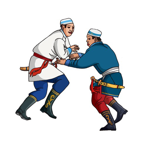 柯爾克孜族(馬上角力):柯爾克孜族有141549人,聚居在新疆克孜勒蘇柯爾克孜自治州。柯爾克孜族主要體育項目有賽馬、刁羊、摔跤、馬上角力、跑馬拾銀元、跑馬射元寶、月下尋物等。