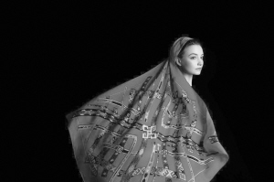 星空密碼絲巾上的紋樣圖形是和上古時(shí)代的文明聯(lián)系在一起的。傳說(shuō)中的“洛書(shū)”即“九宮圖”的原型,就保留在古老的苗繡服裝上。中國(guó)造型文明的起始源于星相學(xué)的認(rèn)知。關(guān)于這些傳說(shuō),在古老的苗繡中找到了印證與答案。設(shè)計(jì)沿用古老繡片上保留下來(lái)的這些神秘符號(hào),通過(guò)再演繹,讓古老的智慧穿越時(shí)空,熠熠生輝。