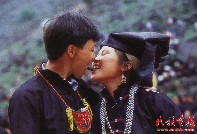 黑衣壯青年男女的戀愛熱情浪漫,一個(gè)個(gè)扔向簸箕的香包和紅帶子,不久就會(huì)連接兩顆年輕的心,引出一段醉心動(dòng)人的愛情故事
