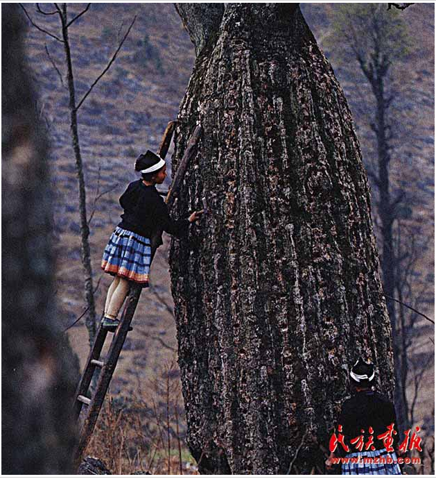 形如酒瓶的粘膏樹,它的汁液是白褲瑤畫圖的原料