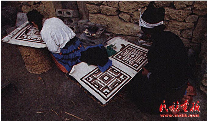 村里家家戶戶的門前,白褲瑤婦女不管是老年人還是青年人都在忙著紡線和畫著蠟畫。白褲瑤女子從小就跟著母親學(xué)紡線、織布、蠟畫、繡花。十二三歲就開始給自己縫制嫁妝,結(jié)婚后又要給孩子和丈夫做衣服。