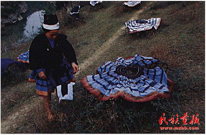 河邊晾曬的百褶裙像一朵朵山花