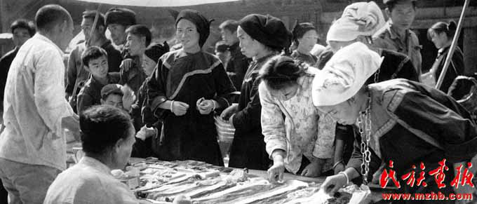 1980年,全國民族地區(qū)落實黨的民族政策,切實尊重少數(shù)民族的傳統(tǒng)習慣,轟轟烈烈地恢復民族傳統(tǒng)集市,以最短的時間恢復生產(chǎn)、發(fā)展自由貿(mào)易、豐富群眾生活。圖為貴州苗族農(nóng)村市場開始活躍起來《民族畫報》1982年第1期