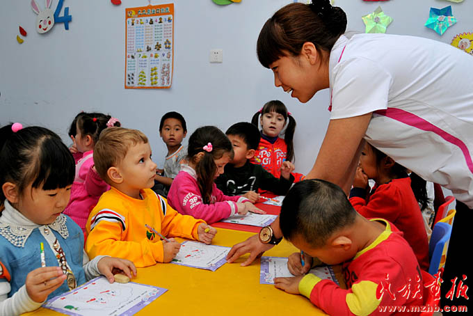 共建“一帶一路”是以習近平同志為核心的黨中央著眼于我國改革開放和長遠發(fā)展提出的重大國際合作倡議。隨著邊境往來不斷密切,周邊國家越來越多的人選擇到中國來學習文化,客觀上增進了感情。圖為2017年俄羅斯的小朋友在吉林琿春學習中國文化?!睹褡瀹媹蟆?017年第4期